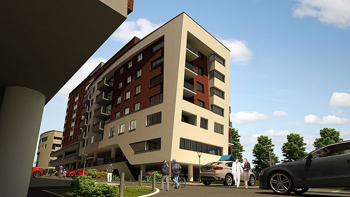 Since the primary purpose of the complex is residential a special importance is paid to heat the buildings which is achieved with the use of bricks. The brick itself offers the future users a warm feeling of home. The dominance of greenery also has a special role in the complex.