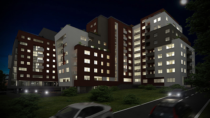 The buildings are designed to accommodate both the residential function and the commercial function on the ground floor. The parking area is designed in the underground floors of the buildings, and a part of them in the open area. The parking area contains 193 parking spots.