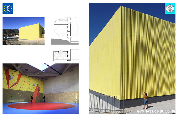 The building is part of a plot where is erected a secondary school, and a gymnasium. This new building reserved for students is intended for gymnastics and circus. The program simplicity led us to reflect on the plastic side of the project. In fact, the area of study of the circus, put out the physical and moral development, includes a cultural, artistic, and social. The transience of the circus that is assembled and disassembled in cities remains in the collective unconscious. Our project is an allegory of the circus tent. The idea is simple “ a concrete box that was covered with a cloth “. Concealment becomes mystery, and make us perceive differently what was commonplace before. We wanted to create a sculptural object concealed and packed in a skin of concrete, corrugated as a wavy stage curtain. The yellow ocher color gives the blind walls an expression of lightness heightened by the fact that the stamped concrete does not touch the ground. Because of this, the object, which could have been a simple gym, takes an artistic dimension. By this project, the idea of a building disappears in favor of an object carved in relation to its context and program. The rationale for the staging of such an object lies in the definition of the close relationship between sports, circus, entertainment, art, and social.