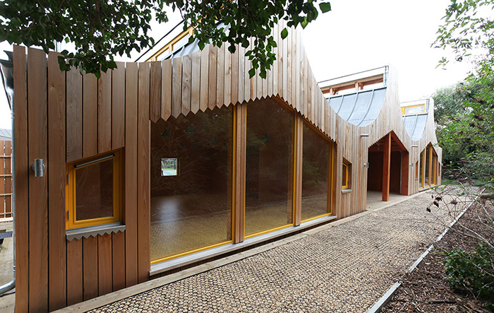 The woodland is a magical world of its own, separate from the world of the school and busy roads that surround it. Our design concept for the woodland classrooms was to encapsulate this feeling of being independent from the school within the building itself; and a sense of discovery in the details that allows the experience of being in and around the building to feel very much part of the woodland narrative.
