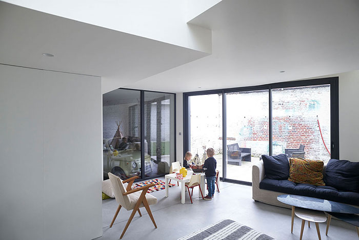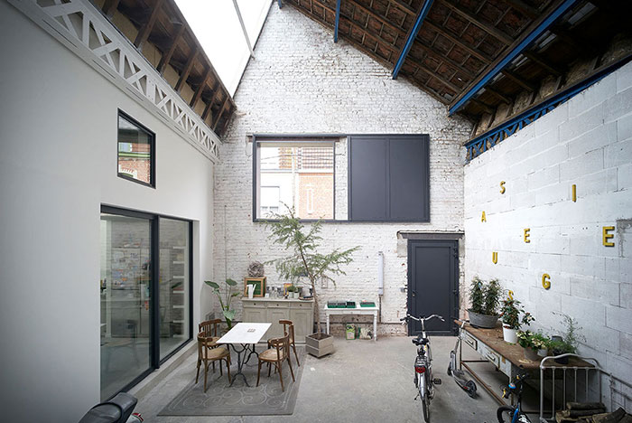 The project is located in La Madeleine's hyper center (Lille metropolis), in a dense urban fabric characterized by a significant presence of individual dwelling houses and former industrial buildings. A young couple acquired a former workshop and entrusted us with its transformation into a family residence.
