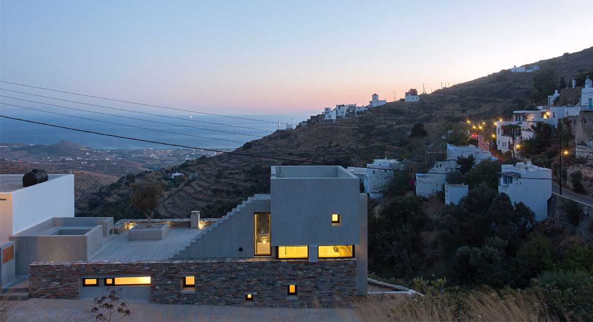 Inspired by the traditional architecture of the built stone dovecotes of Tinos as well as by the way that all additions were carried out according to height, the residence in Triantaros becomes noticed in two levels in a bipolar bond.