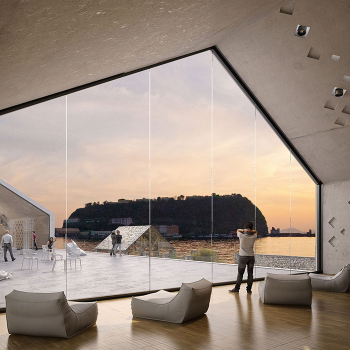 The New Science Centre will rise on the grounds of the former museum, destroyed by a fire in 2013. Today the site appears as a vast urban void disputing the accessibility between Bagnoli, Fuorigrotta, the rocky promontory of the hill of Posillipo and the Mediterranean Sea. Thus, the intervention aims at becoming a reference point in the city’s cultural and social life by strengthening its relationship with the landscape. The relationship with the context and the desire to preserve the historical memory of the industrial nucleus, where the museum complex of the City of Science is located, forms the basis of the architectural concept.