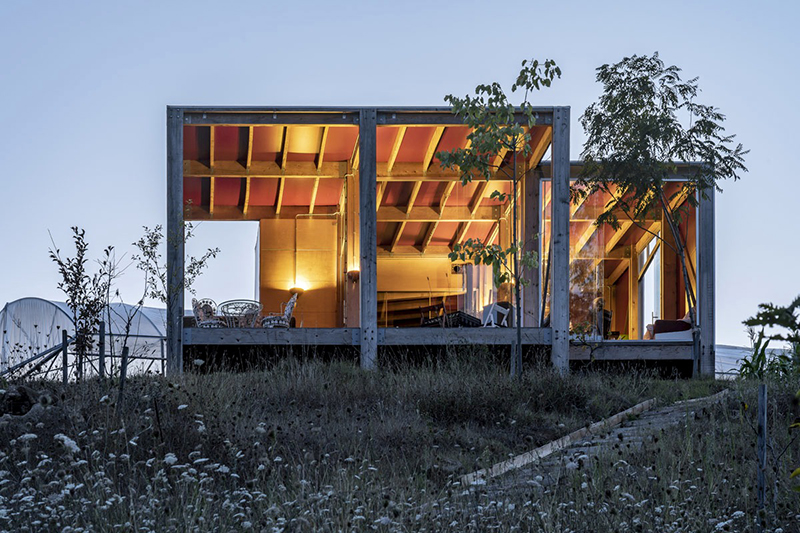 The buildings are constructed with light foundation systems and steel & wood structure. There are personal greenhouses associated with some houses for bioclimatic effect and to grow food.