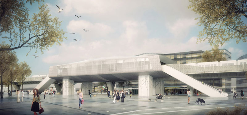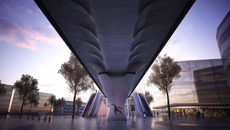 Rennes is one of the smallest cities in France to have a subway. In 2013, 11 years after the opening of the first line, in order to improve the circulation in the city, the works for a second subway line began. Cesson’s subway station is the temporary end of the line B, and the first station of the new eco city being developed «Via silva». The station is implanted on a place that we wanted to clear as much as possible. The station is built on sort of bridge at 9 meters above the ground and has an ovoid shape that is connected to all the corners of the public place.