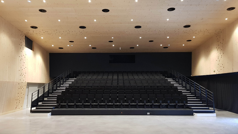 Event Hall is located on the border of the town in a confusing environment made of architectural wanderings constituting a dissonant heteroclite system. The project doesn’t take elements of this existing situation but assumes its ability to drive a new ambition in this district. It dissolves the massive volumetry within a system where the scale is decomposed, and the relation to the building is changing. The ground treatment participates in this device by avoiding large asphalt surfaces in favor of several mineral and vegetable materials.