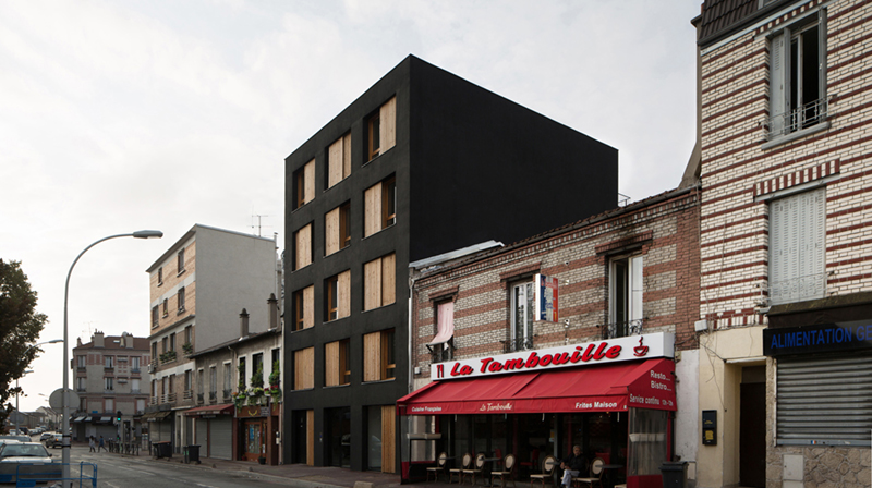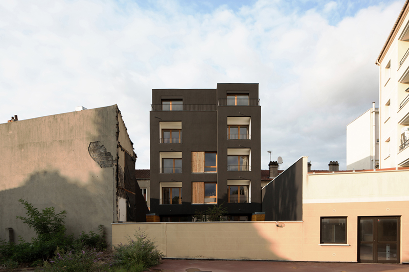 The plot at 170 Rateau Street is located on the edge of town, facing an industrial zone consisting of warehouses along the highway and the railway suburban train. Although there is an alignment along the street, the built-up front appears largely discontinuous, with alternating constructions R+1 and R+4. This results in an impression of discontinuity characteristic of the suburbs. Globally sparse, the district contains a strong potential for development that foreshadows an evolution of the built front in the coming years. The project plays on this transition period, offering a full contrast with its neighbors. It reveals the emptiness that existed before and sometimes appears as an unusual and autonomous object, sometimes as the prefiguration of the future built front.