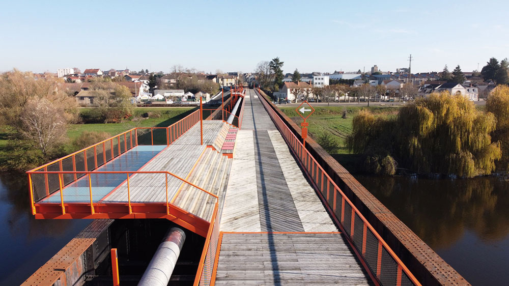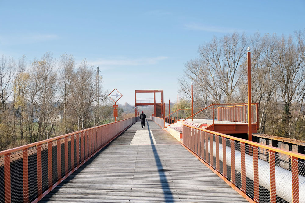 The rails promenade establishes a pedestrian and bike connection between the Allier river's two sides by highlighting a historical side of popular interest.