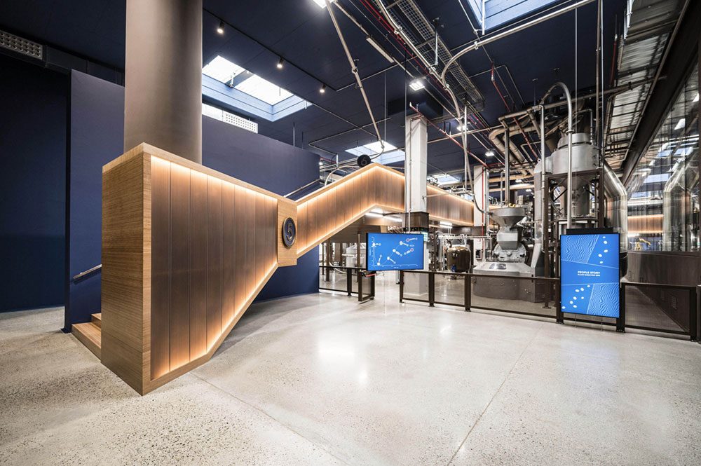 At the center of the building, the entire production plant has therefore been inserted, while the other functional areas have been chosen to gravitate around it as separate but complementary parts within the same building. That allows visitors to understand the entire coffee cycle from plantation to cup through a highly experiential and immersive path.