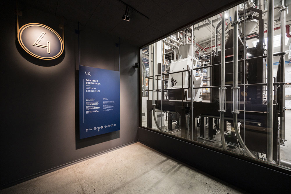 The visit experience aims to place the production machines at the center; the machines thus become both the heart and the beating brain around which all the environments revolve.