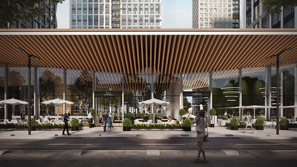 Dyer has designed a sensitive yet exciting scheme, combining modern architecture with classical and elegant references that will sit delicately in the city's developing skyline, enriching the area's existing character.