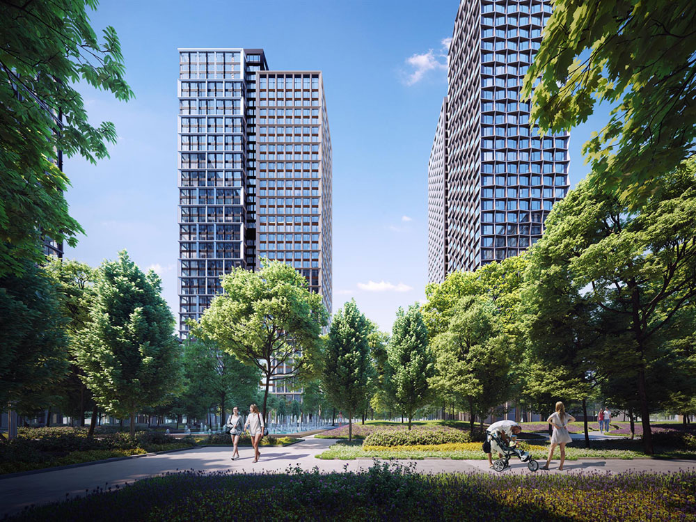 Prime Park is a landmark development creating a genuine new urban quarter in a developing part of the City of Moscow. The scheme comprises circa 377.200 sqm high-quality residential towers (and 18.000 sqm of educational facilities and 12.000 sqm commercial area).