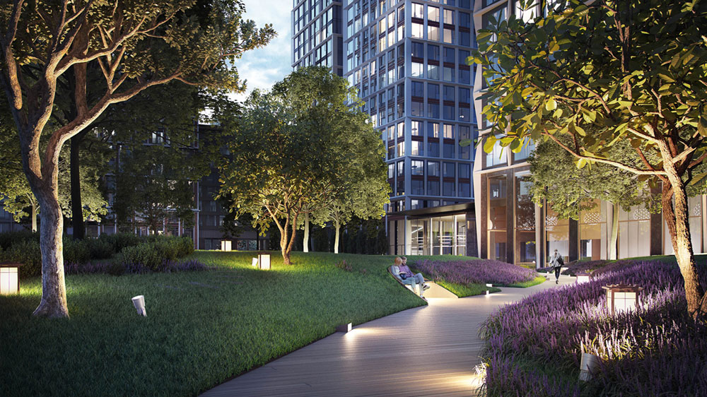 The heart of the scheme is a large 6 hectare beautifully landscaped private residents' garden (200 trees, thousands of shrubs, and other plants). The existing site was a poor quality retail building and car parking with little ecological value. The creation of significant areas of new landscaping will positively affect biodiversity and significantly increase the ecological value of the site.
