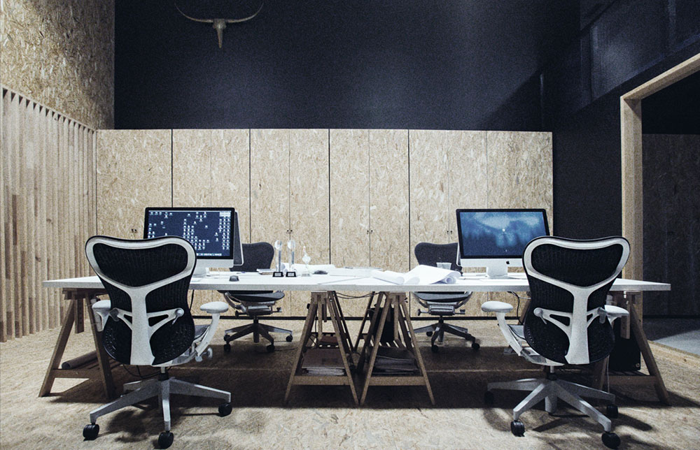 The managers reside on the mezzanine to be in touch with the rest of the team. The downstairs space was divided into different zones of creative thinking to increase the team's efficiency. Natural wood combined with dark colors plus high-quality office furniture and equipment, computers, and an intelligent illumination system make the office a perfect place to work in.