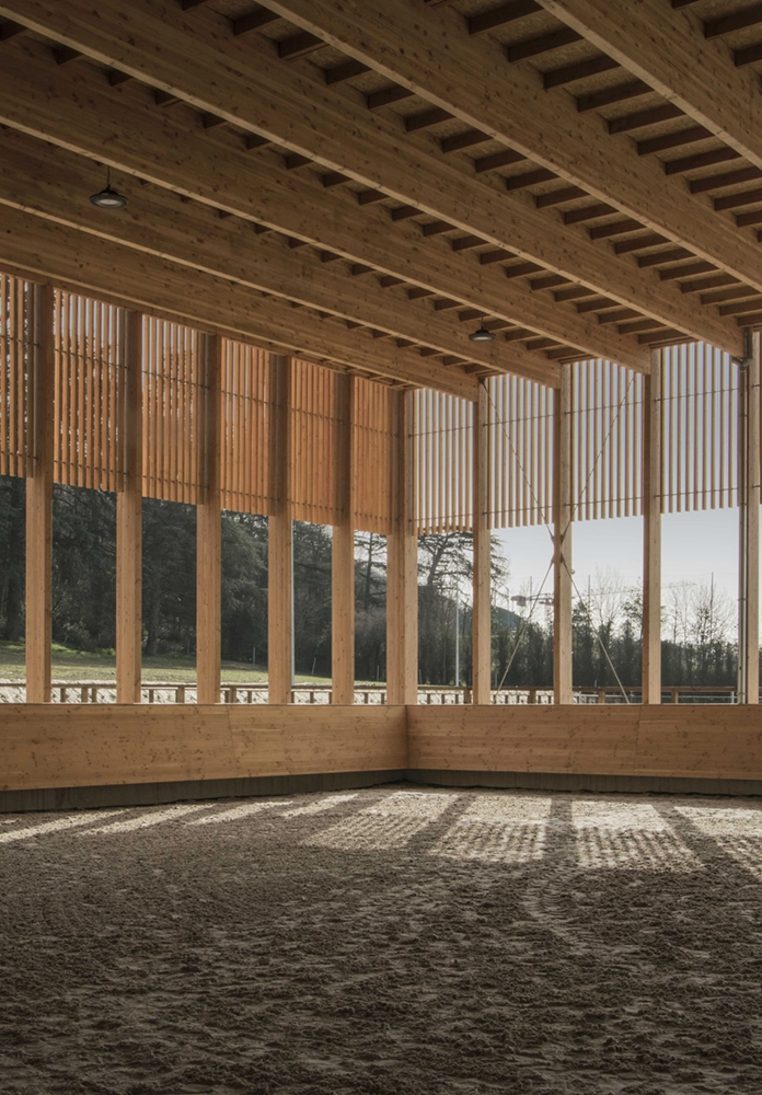 The project stands out from conventional prefabricated stable by offering a tailor-made solution. The architecture, in a quest for simplicity, tries to fit in and not impose itself to its natural environment.