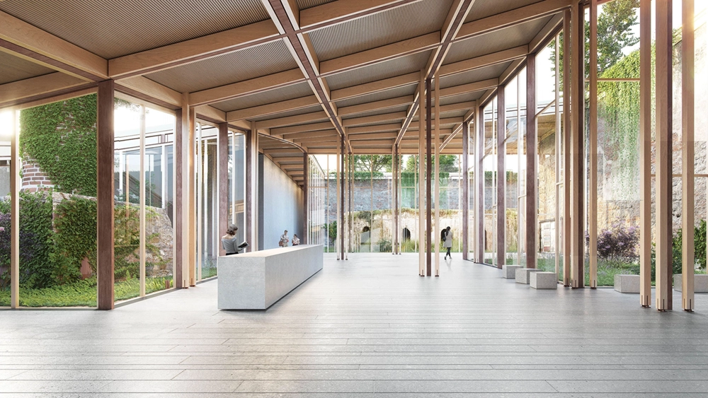 The park and the museum become one: nature grows down and enters through the patios, becoming an active exhibition element. The existing structures of the old ceramic industrial halls and the remaining earth will be used as an integrating part of the new design. The old brick walls become the new walls of the main exhibition spaces, like the earth, which can be transformed into the green roof's soil.