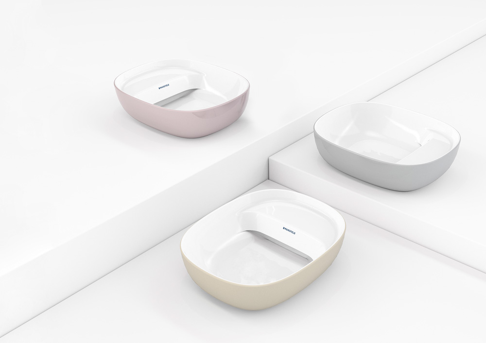 Liquid concept is brought in three different setup configurations: undermounted, overmounted and vessel, expanding design for wider customer preferences. The color variation elicits calm, keeping a subtle nuance of the bathroom color atmosphere. Colors: White, Ivory, Rosewood and Old Gray.