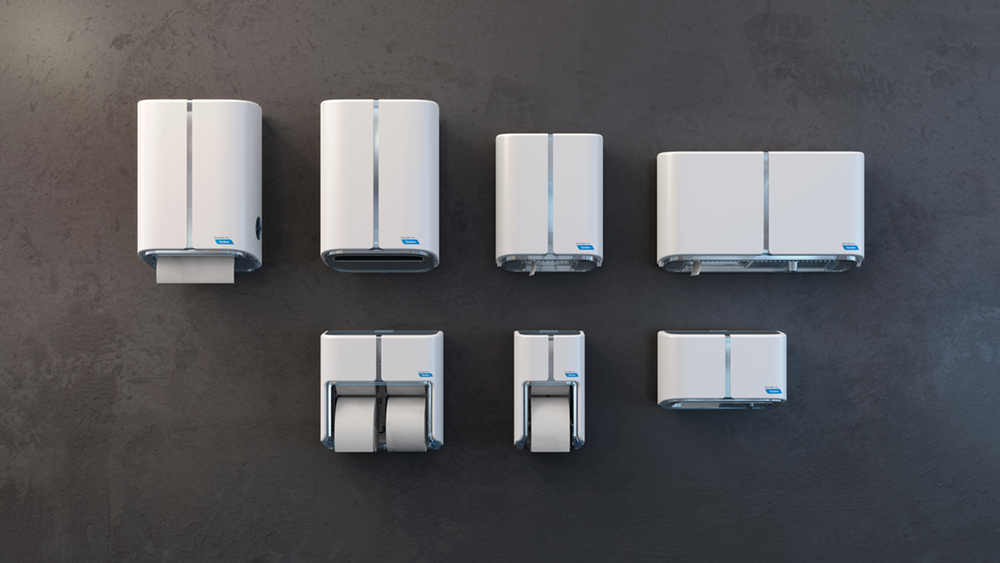 Careful thought was invested in the volumes, textures and colors to convey a sober yet refined appearance that is continued through the complete product line in a cohesive manner. This provides building managers multiples product options to enhance restroom areas.