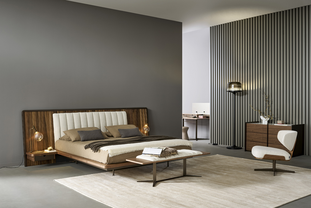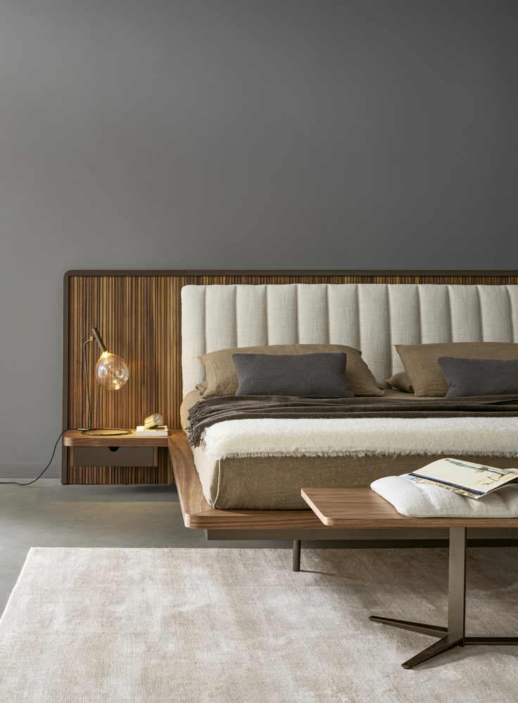 The Nelson double bed, designed by Matteo Nunziati for Bonaldo, is the key element of this new bedroom collection.