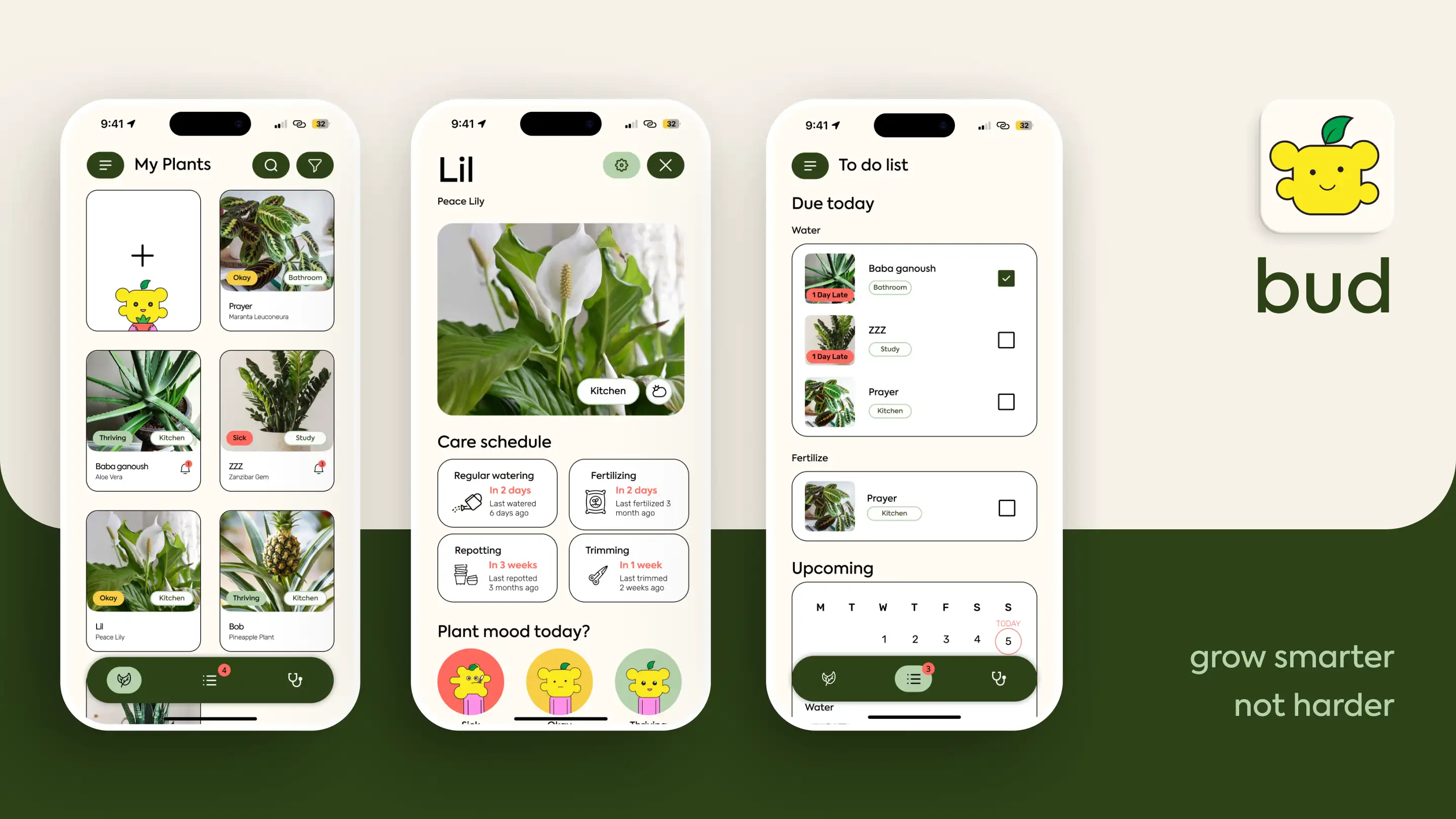 With just a few photos, bud organises all your plants in one place and builds a care schedule for each plant based on its water, soil, and nutrient needs. Plant owners will receive gentle reminders for tasks or assign another friend as a caretaker when they are away, so no plants are left behind even in the busiest schedules.