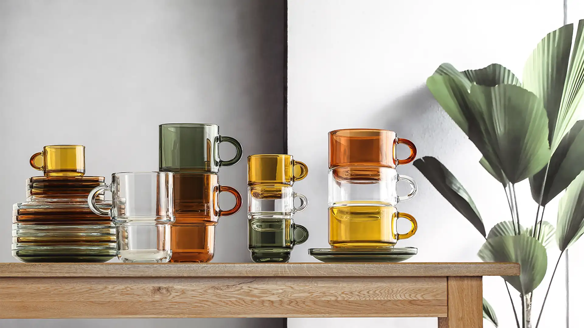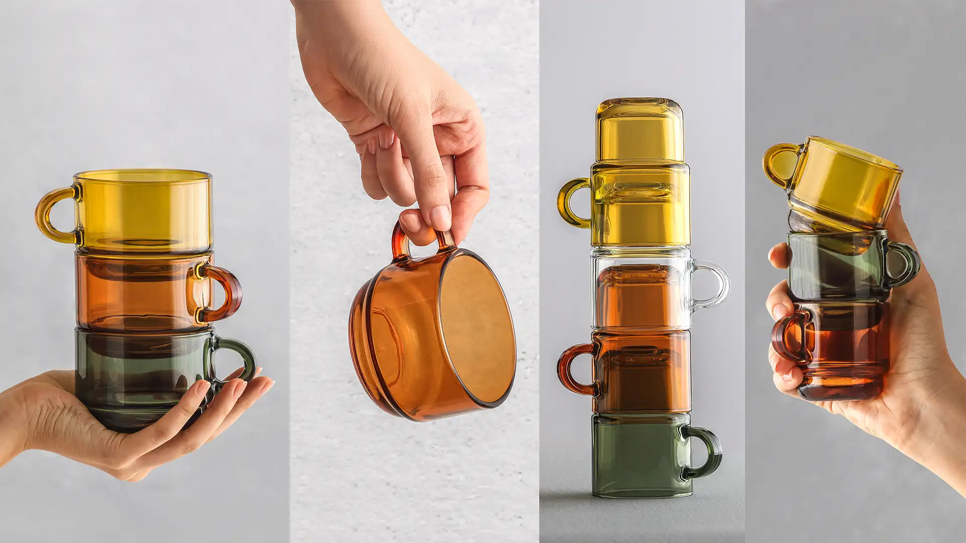 Cozy brings simplicity and ease to everyday use with ergonomic handles, rounded inside and flat outside, and the stackability of both cups and saucers ensures efficient, stylish storage. This familiar yet contemporary set is perfect for those who value comfort and convenience in their daily rituals. Made from eco-friendly glass, it offers durability and sustainability. Whether for quiet mornings or lively gatherings, Cozy elevates each moment with charm, making it a must-have for long-lasting enjoyment.