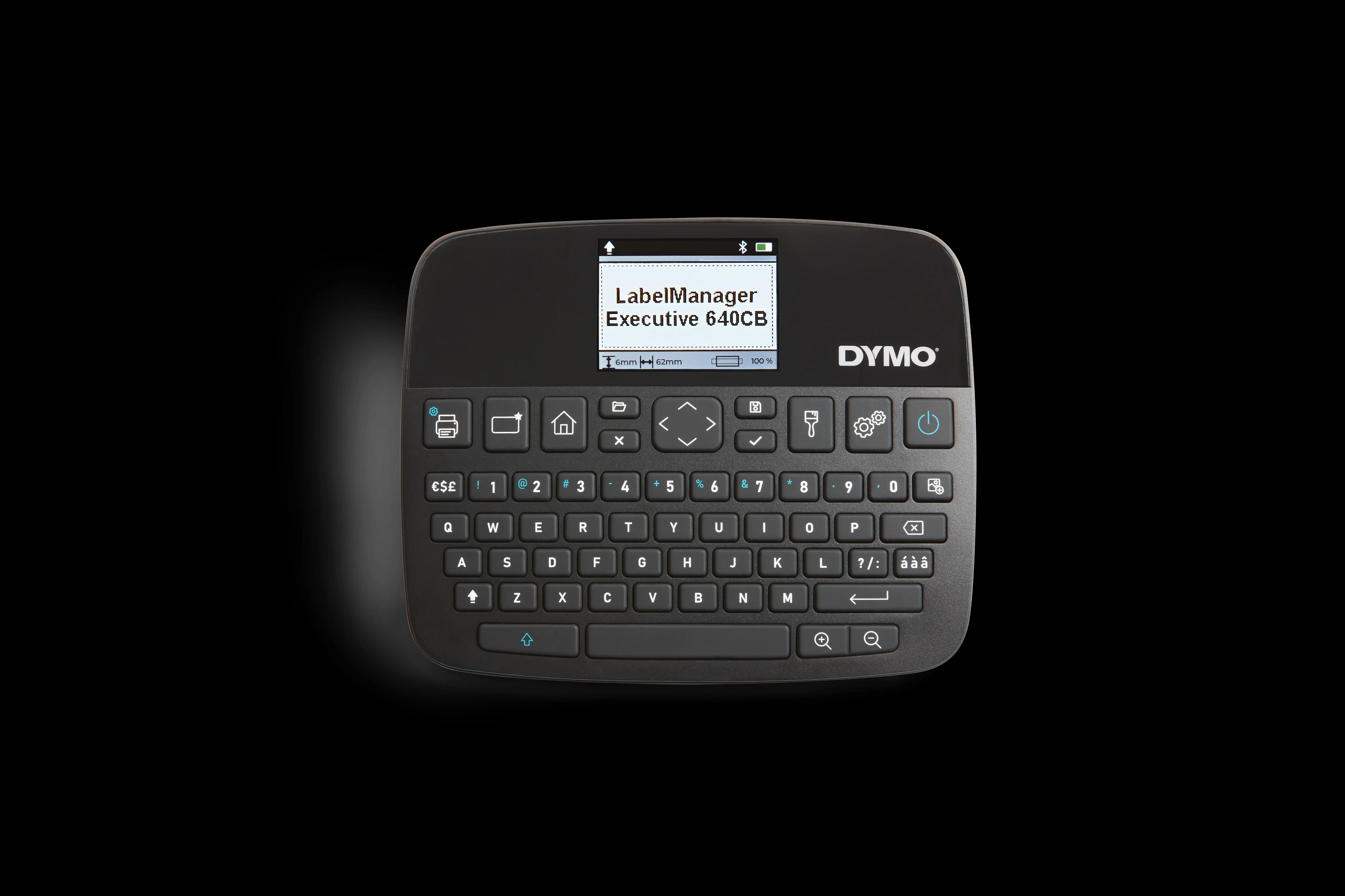 The DYMO LabelManager Executive 640 is a versatile and portable label printer designed for professionals seeking efficient labelling solutions. It features a compact design with a textured grip for comfortable handling during extended use. The device is equipped with a large, high-resolution colour screen, customisable with four different background colours to enhance readability. It supports both D1 Standard and Durable labels, accommodating widths from 1/4 inch to 1 inch (6mm to 24mm), providing versatility for various labelling needs.