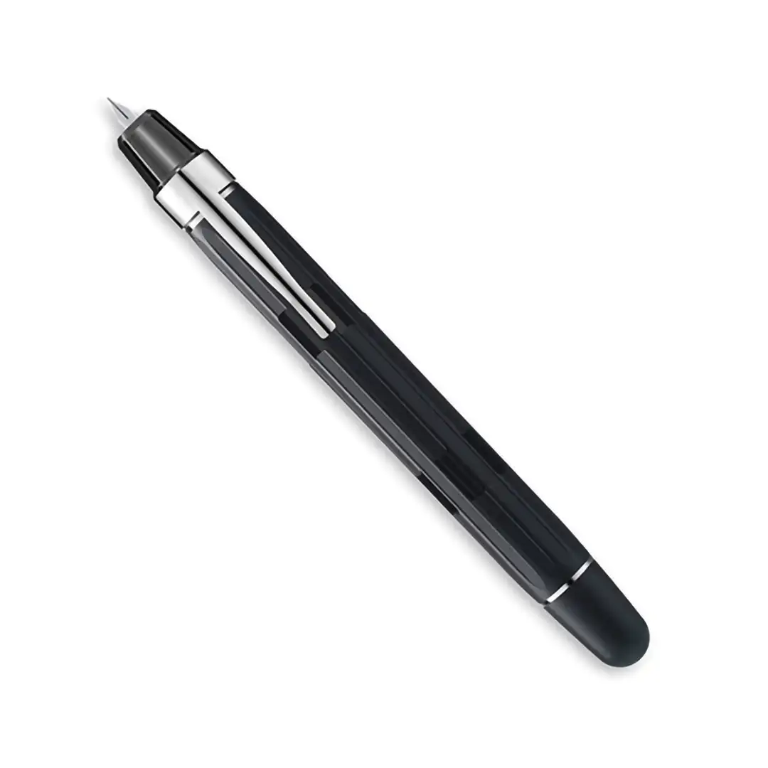 From this reflection came the idea of eliminating the visible button, replacing it with another, less common system, namely, an operating mechanism that acts directly on the pressure of the pen body itself. The body of the pen was designed in two parts, cleverly crafted from aluminum, which slide and interpenetrate and allow the nib to be removed.