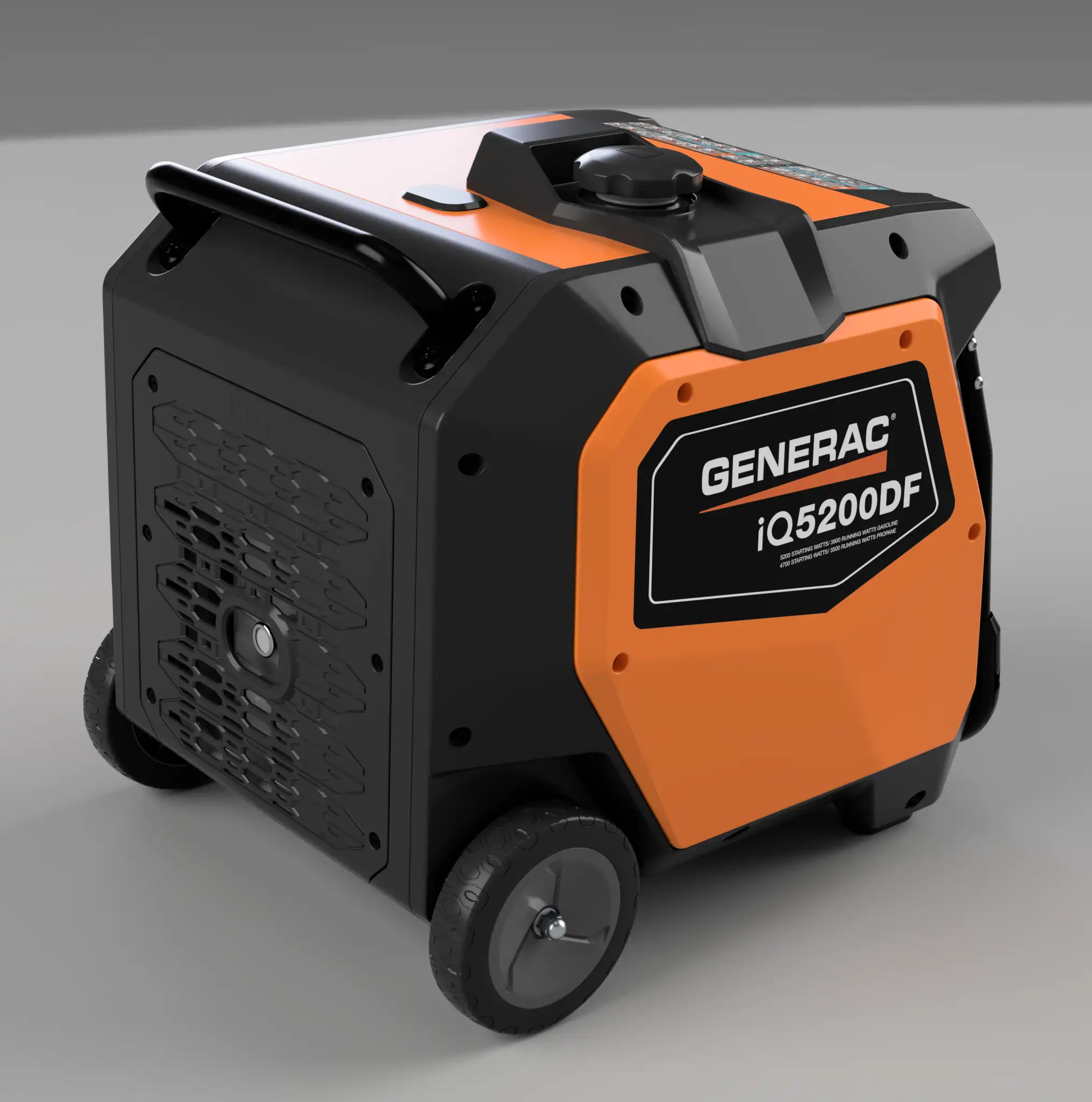 The Generac iQ series redefines portable power with a design that seamlessly integrates high-performance functionality, intuitive controls, and rugged visual identity. Engineered for both home and adventure, this inverter generator offers flexibility with dual-fuel capability, quiet operation, and modern usability features such as push-button start and intelligent LED feedback. The design moves beyond utilitarian expectations, focusing on ease of interaction, ergonomic portability, and serviceability—all within a refined rugged form. With thoughtful detailing and built-in transport hardware, this product enables power on demand—anywhere, anytime.