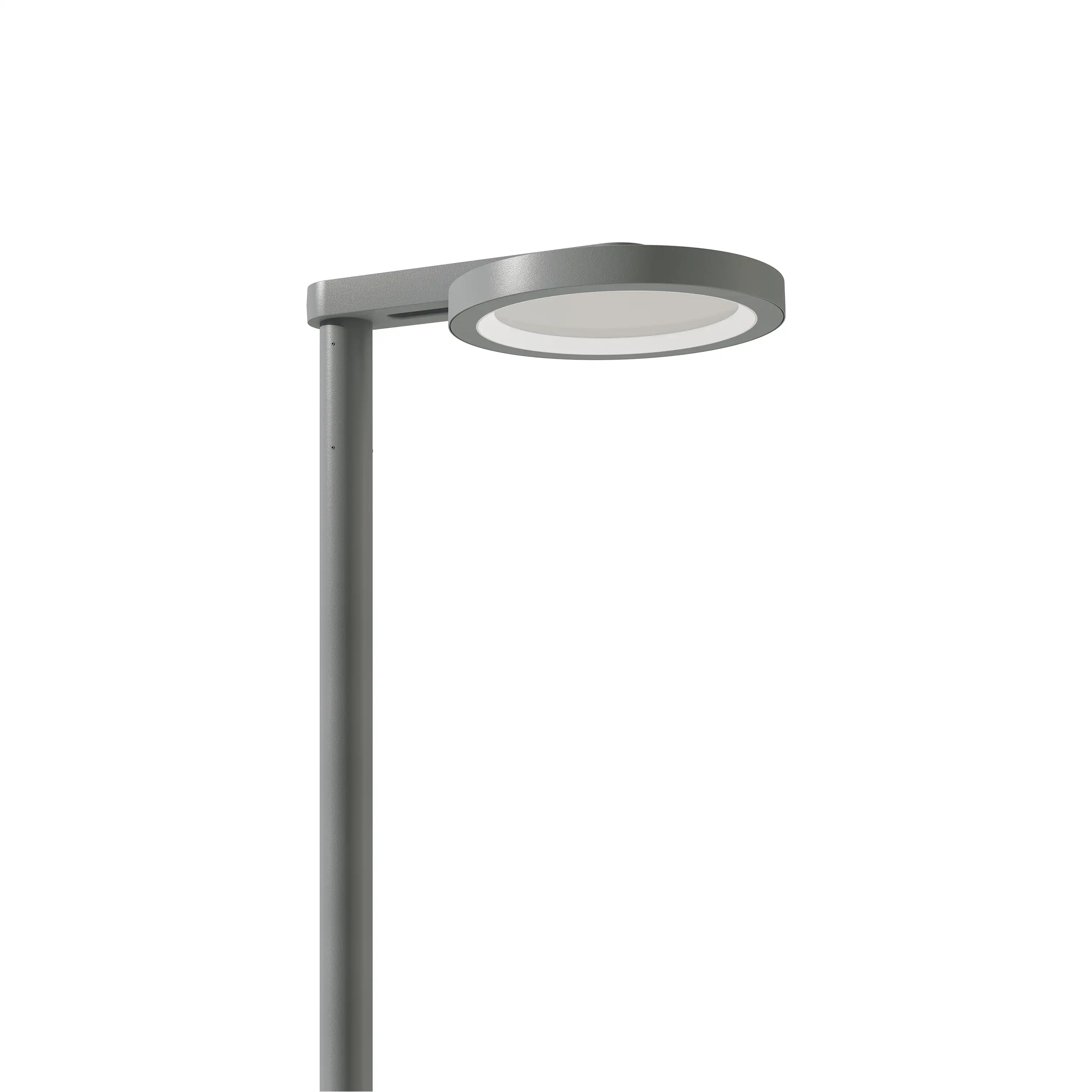 Lupa features a modern, minimalist disk-shaped design, ideal for today’s urban landscapes. Its clean lines, lack of visible hardware, and seamlessly integrated arm bring a refined and elegant touch to public spaces, both day and night. This sleek and contemporary design allows Lupa to blend effortlessly into modern urban environments.