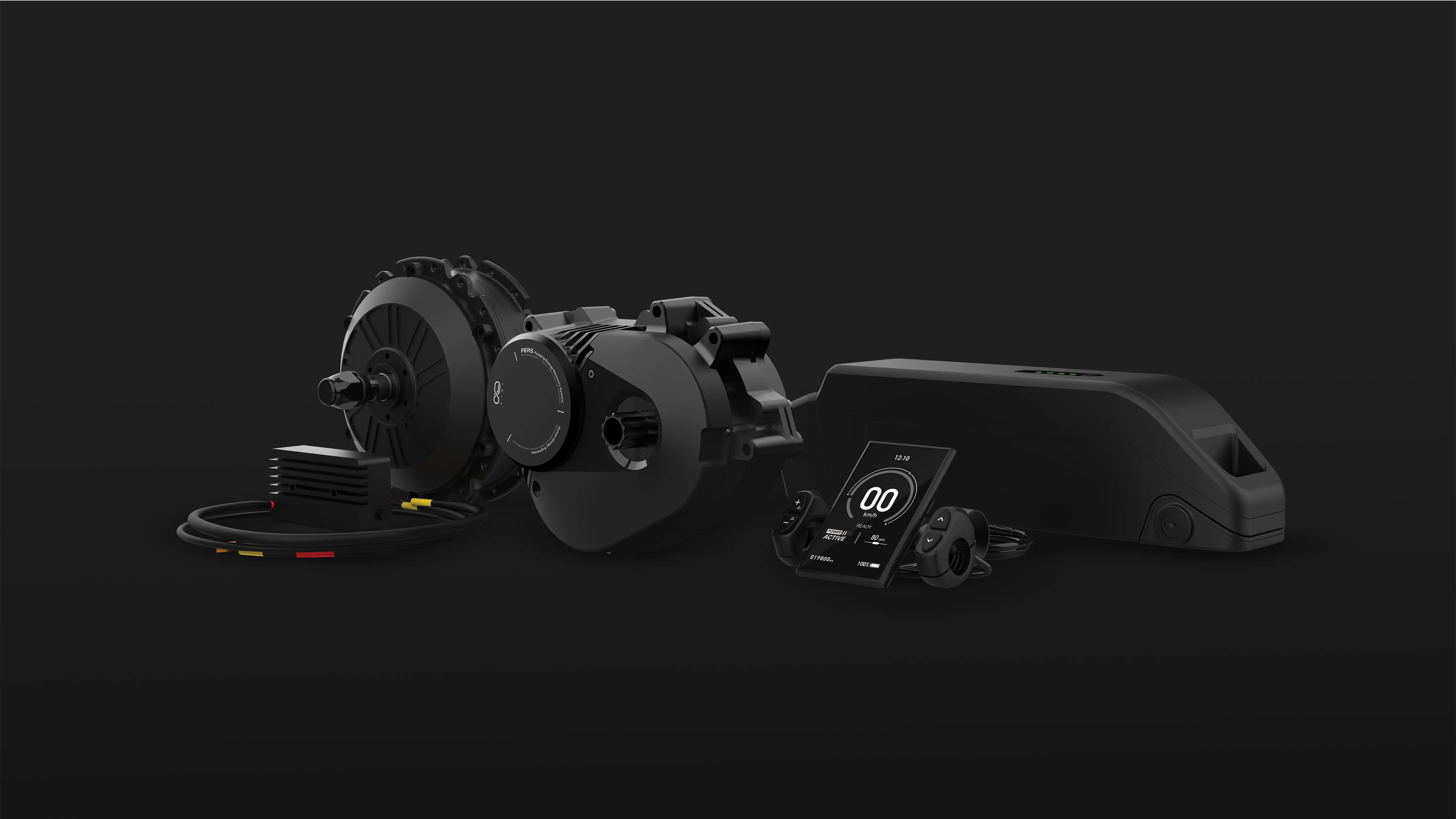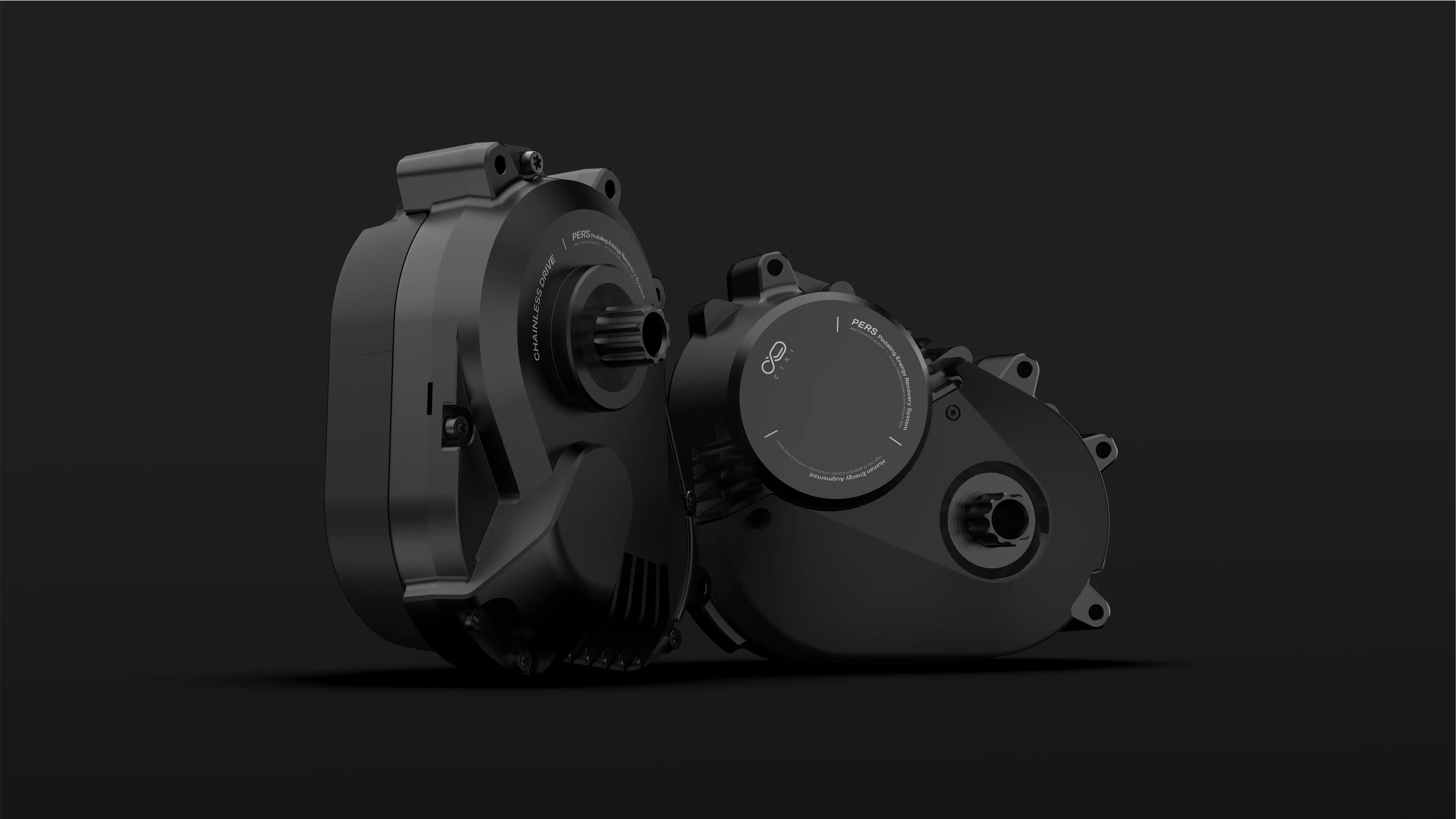 The PERS chain less pedalling system converts human power into bicycle propulsion through electricity, enabling the rider to control speed and braking intuitively by pedalling. The system automatically adjusts the pedalling cadence to maintain a smooth and natural feel at any speed. Pedalling backward activates regenerative braking, which extends the battery range by up to 30% and reduces brake pad wear.