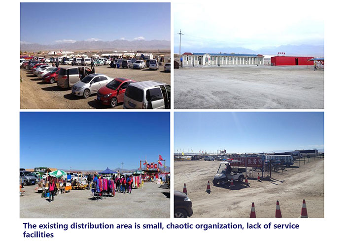 Chaka Salt Lake Scenic Area is located in western China’s Qinghai Province, Haixi Prefecture, Wulan County, about 300 km from the provincial capital Xining. With the rapid development of road trip tour market in recent years, Chaka Salt Lake area has been favored by tourists - in 2015 it has reached 1.2 million visitors, and has reached 20,000 people per day for peak hours. Reformed from the factory of Western Mining co., ltd, Chaka Salt Lake Scenic Area`s existing reception capacity and quality could not meet the demands of tourists in recent years. It is really important to turn from the industrial area to the real scenic area. The renovation scope is about 500,000 square meters, focusing on enhancing the parking, navigation, public toilets and other service facilities.