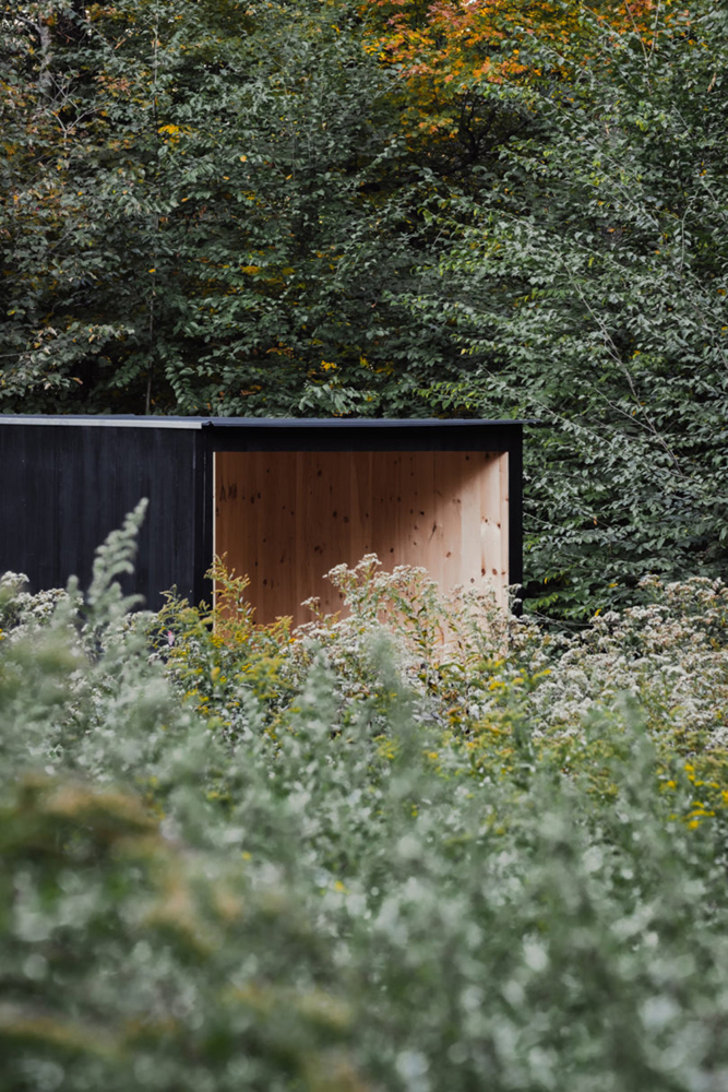 Edifice: “a building, especially an imposing one,” or as “a complex system of beliefs.” The Edifice, is a modest 500 square foot cedar cabin located in Fremont, New York. Approximately two hours northwest of New York City, nestled in the woods of the western Catskills mountains.