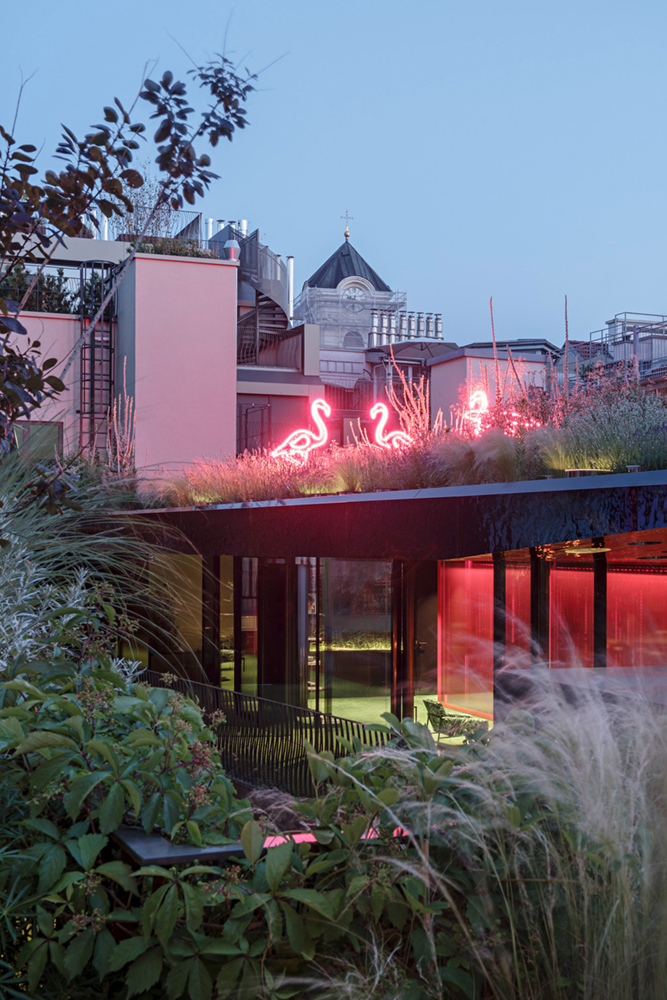 An extensive green roof of the ARTSPACE and the use of vertical greening for firewalls reduce the temperature by up to 4 degrees. An age-old alliance between art and the inherent beauty that exists in nature, as well as the need to use nature and its resources in an urban context, has been a source of inspiration for BEHF Architects when designing the ARTSPACE.