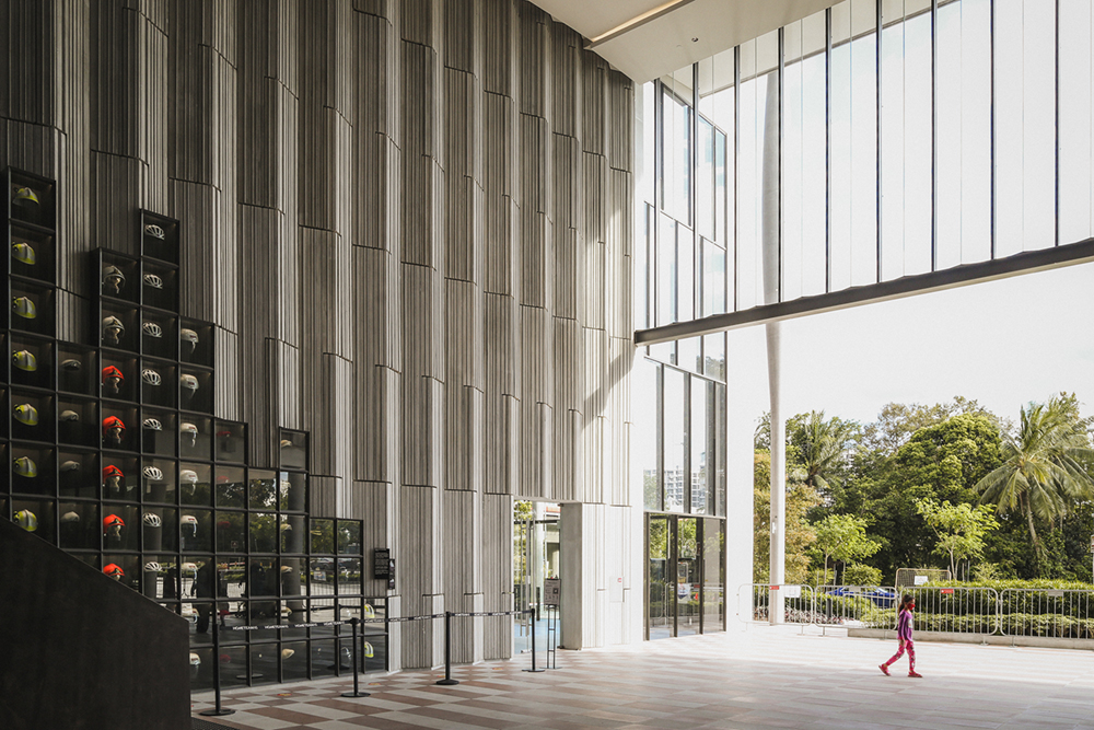 Passive ventilation, daylighting, etc: Cognizant of the need to minimize energy usage in our tropical climate, the architecture was planned to reduce solar gain and remain largely naturally ventilated. The building is orientated north-south to minimize solar heat gain and back of house spaces were deliberately placed along the western elevation to shield the main spaces from solar heat.