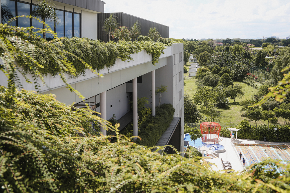 With the borrowed landscape of the adjacent park and its mature “tree-line,” the development’s overall landscaping is appreciated at different levels. The landscaping strategy and general reliance on natural ventilation also reduces the urban heat island effect.