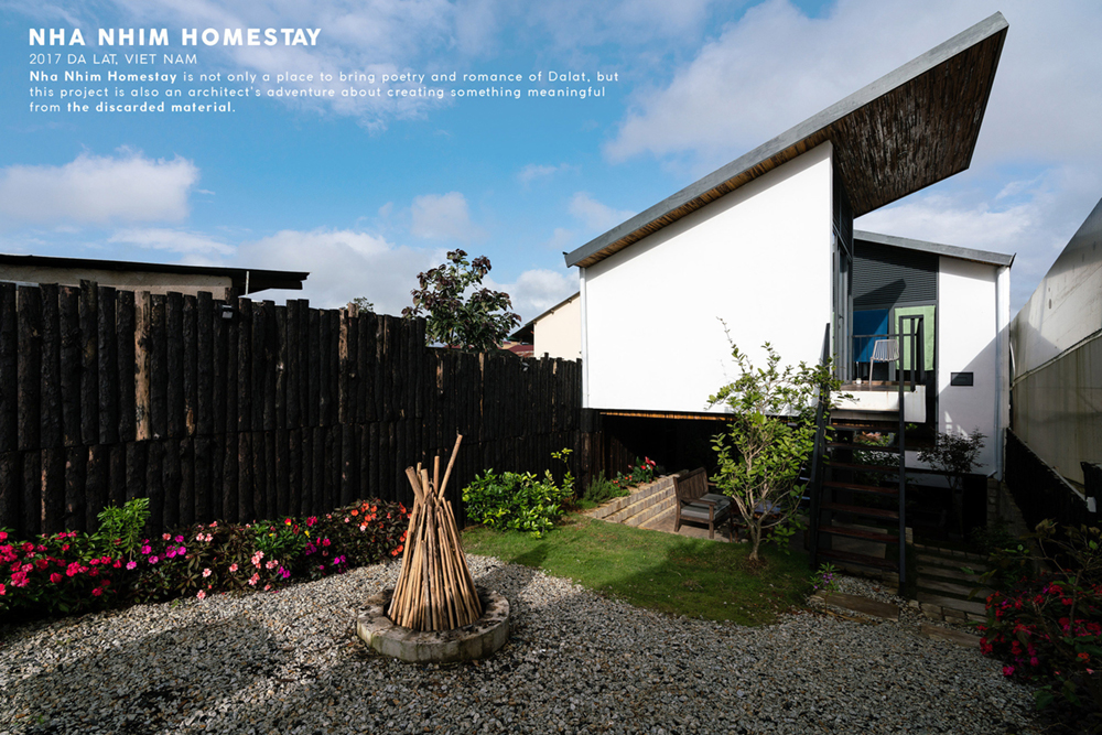 There were also test concrete blocks being thrown away. They were repurposed by being carefully aligned to recreate the iconic talus slope of Da Lat. Tree bark, branches, test concrete blocks were the materials that were given a new life in this project.