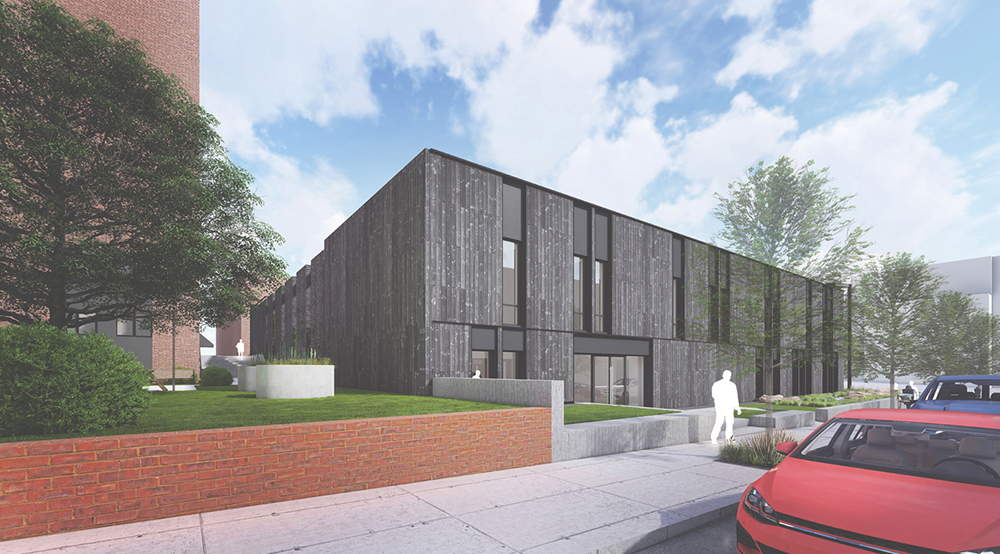 Following LBC guidelines, biophilic principles influence the design. Large windows will fill the space with natural light and visually connect the first-floor communal area to the outdoor courtyard.
