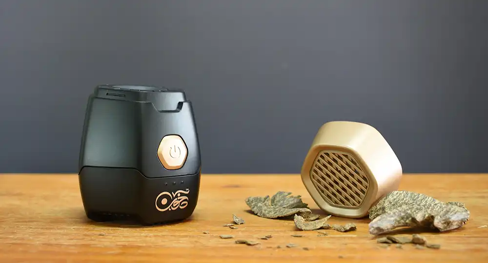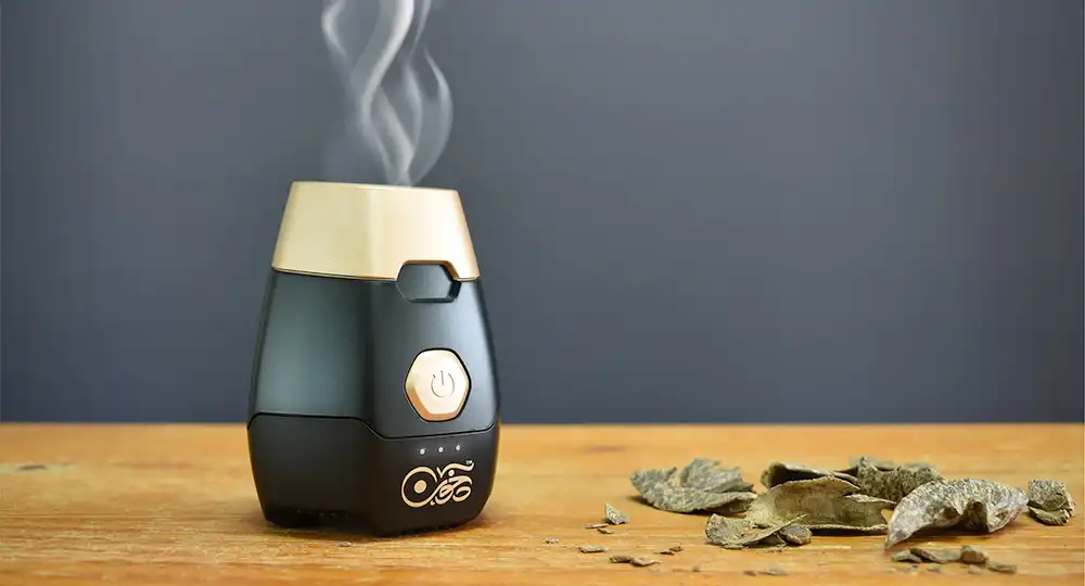 In order to create a scent or perfume, simply place agarwood or another scented wood into the insulated heating chamber. Double-click the power button. And that’s it. The scented smoke will come out within seconds. Direct it towards your hair, or clothes, or leave it standing on the table.