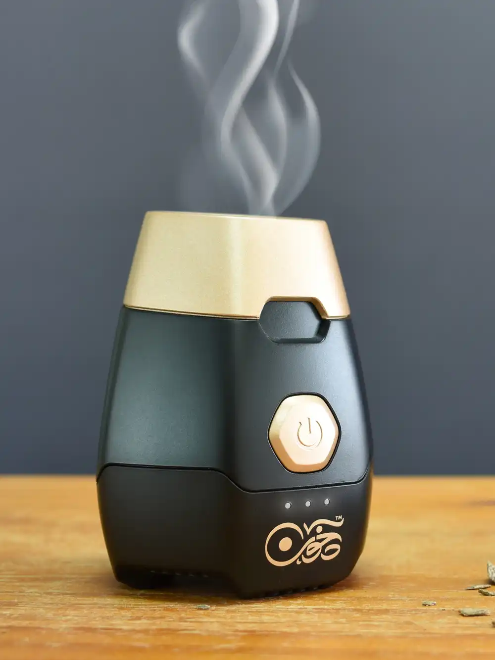 The Dukhoon+ was designed to create aromas and scents using natural ingredients, based on an ancient traditional ritual. After numerous design iterations, Dukhoon invented a sage, user-friendly, and natural-ingredient-based technology. The Traditional Arabic way of creating scent and aroma is by burning natural wood chips, like agarwood, using charcoal inside a stone or metallic burner. It is a natural way to create room fragrance, personal perfume, or even aroma therapy.