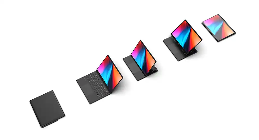 The Elite Folio is both familiar and unique at the same time. It resembles a standard clamshell laptop, but look closer and you find that the screen pulls forward to bring it closer for touch and pen interaction. Or lay it completely flat for a true tablet experience using the wirelessly charged, magnetically attached pen that is right there above the keyboard. The device enables the hybrid work model where it can be connected to an external display for ultimate collaboration in any usage mode.