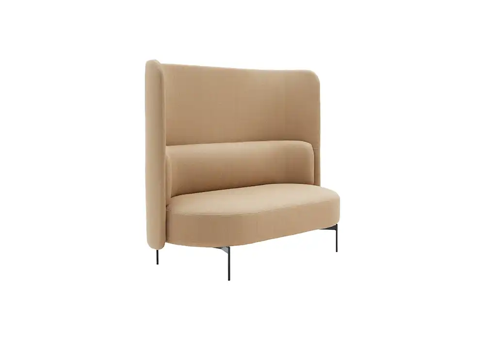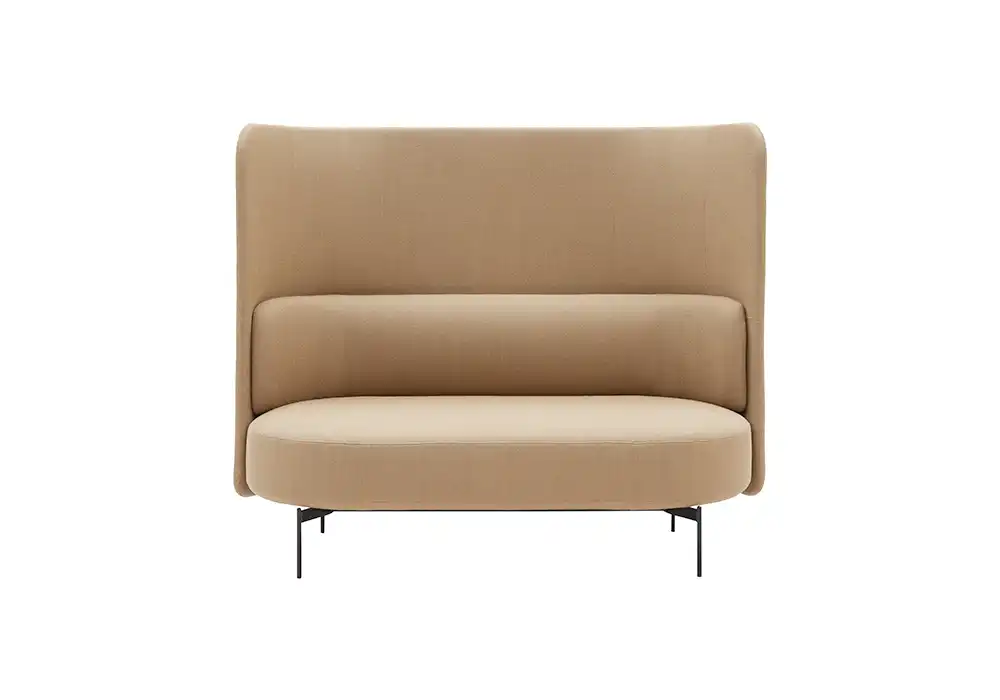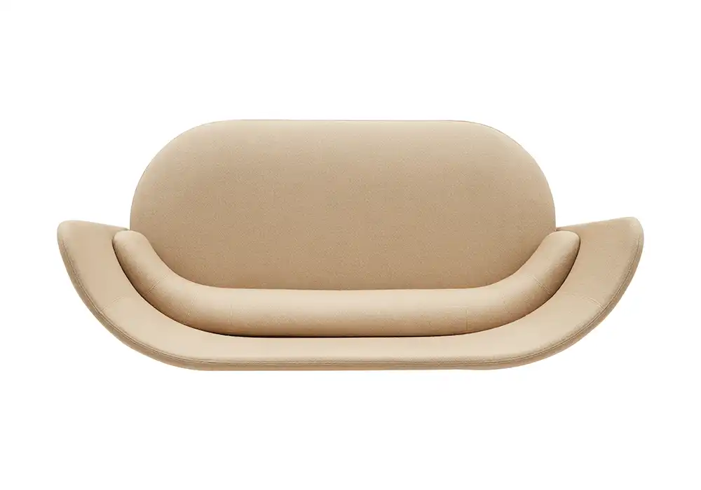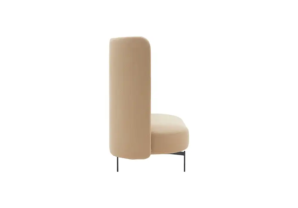 JOE is a series of soft, flexible seating furniture based on strong shapes, geometric curves, and clear lines. The centerpiece of the series is a circular pouf with slim legs. All seating elements are embraced by a light back wall that serves as a protective shell and creates comfort and privacy for relaxation or private conversations in hotel lobbies, lounge areas, libraries, or modern office spaces. The soft backrest cushion provides maximum comfort. The family of seating poufs, sofas, and armchairs is completed by a matching coffee table with the same floating appearance.