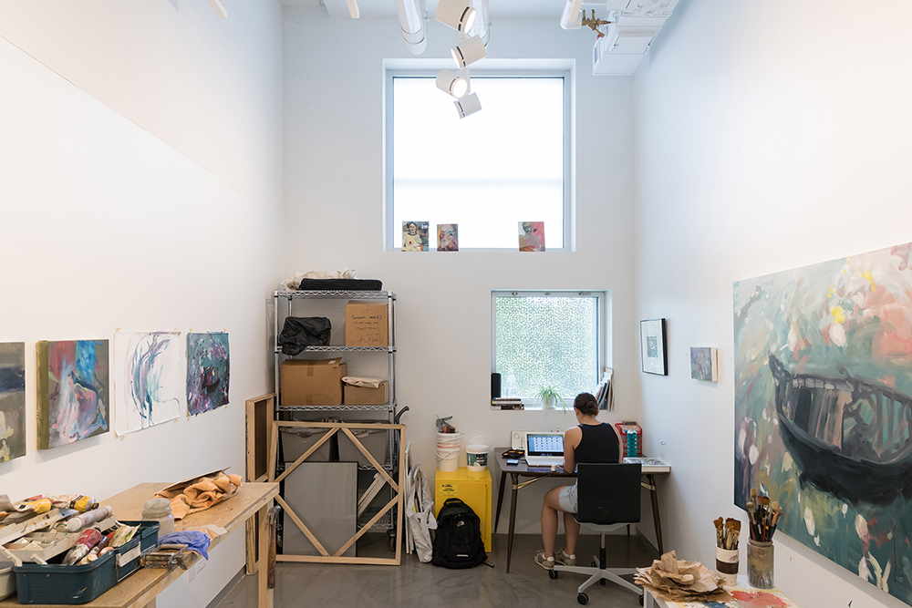 Interconnection: Horizontal Programs, Vertical Porosity | In a school of the arts today, interconnection and crossover, made increasingly possible through digital techniques, are of fundamental importance. Interdisciplinary collaboration between the School’s various art departments is facilitated in the vertical carving out of large open floor plates. Students can see activities ongoing across these openings and be encouraged to interact and meet. Further interconnection is facilitated by glass partitions along the studio walls adjacent to internal circulation.