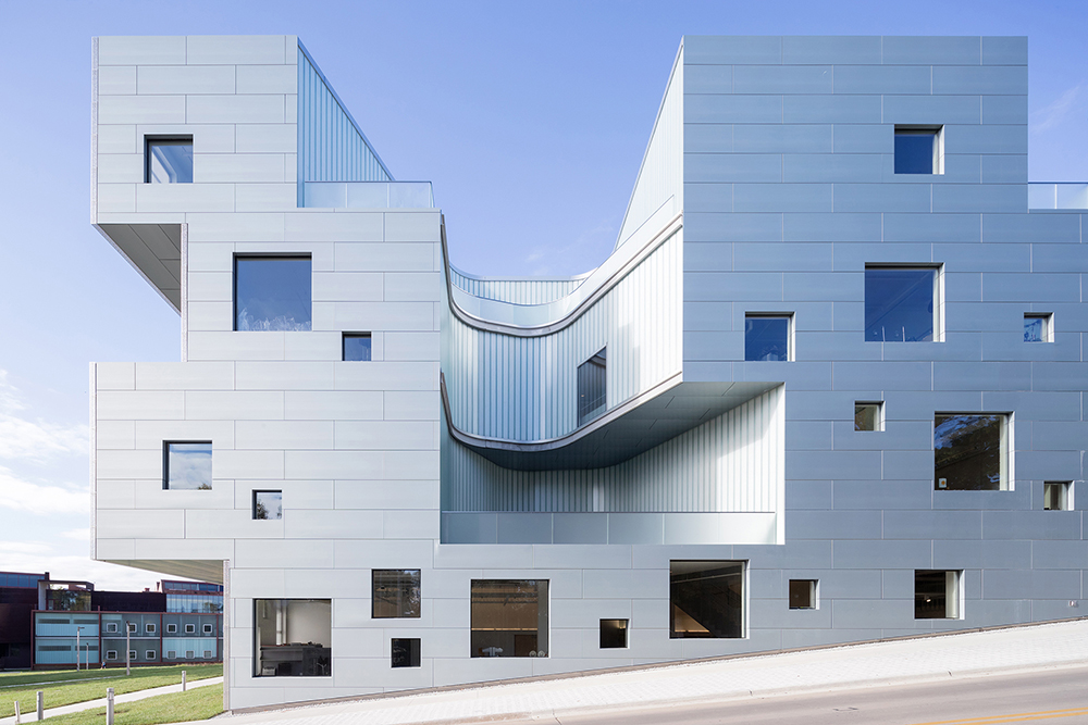 The new building forms an Arts Quad with Art Building West has drawn students from all over campus to its social spaces and library since opening in 2006. Together they form a visual arts campus for theorizing, teaching and making art.