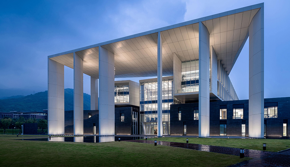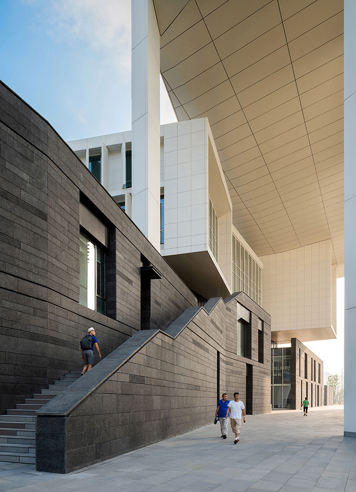 Ge Hekai Hall at Wenzhou Kean University (WKU) is an exemplar of architecture for higher education in the 21st-century, an emerging building type in which multiple academic and research programs are gathered in one complex that forms a campus hub. Its interconnected mix of disciplines includes the College of Architecture and the College of Design combined with the School of Computer Science. Yet, it is the project’s location at the center of the WKU campus that drove the design and programming to be more than the sum of its parts. At the center of the main campus axis, facing a grand front quad, Ge Hekai Hall is effectively the face of WKU.