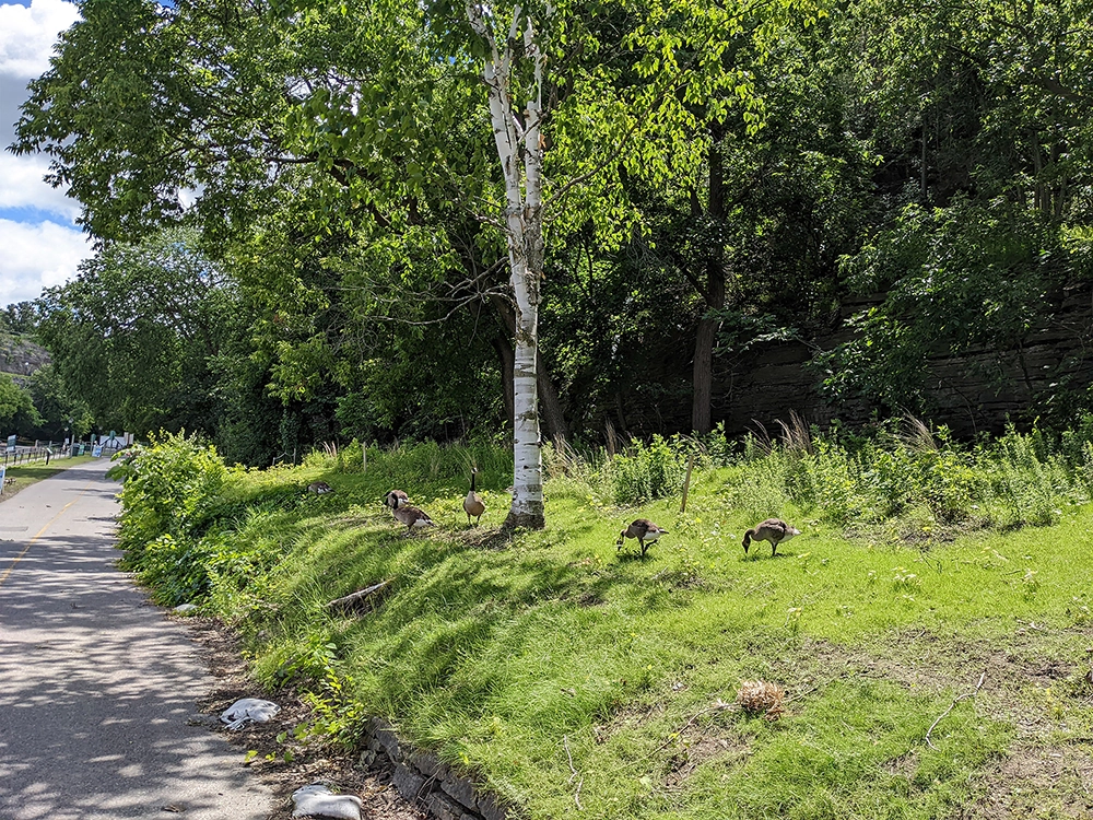 This multidisciplinary project was developed and led by landscape architects, in collaboration with a multidisciplinary team. The global vision was defined through the comprehension and conservation of the picturesque landscape's heritage value - designed by Calvert Vaux at the end of the 1870s - and the ecological value of the terrestrial community, representative of the river corridor's vegetation. The intervention on the abrupt incline situated behind Parliament Hill, formerly composed of a healthy mixed forest, is based on a three-pronged approach seeking to maintain and optimize existing conditions, improve them, and create wildlife habitats. The objective was therefore reforestation, including vegetation control through selective pruning, the elimination of invasive strains, and the planting of native species.